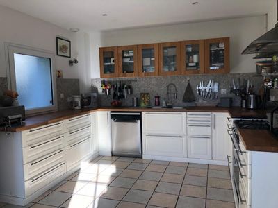 - Au rez de chaussée, une grande salle à manger attenante à une grande cuisine permettant la préparation de table d'hôte pour toute la capacité des chambres, un séjour, une suite parentale (chambre, dressing, salle de bain, WC), un bureau, une buanderie.